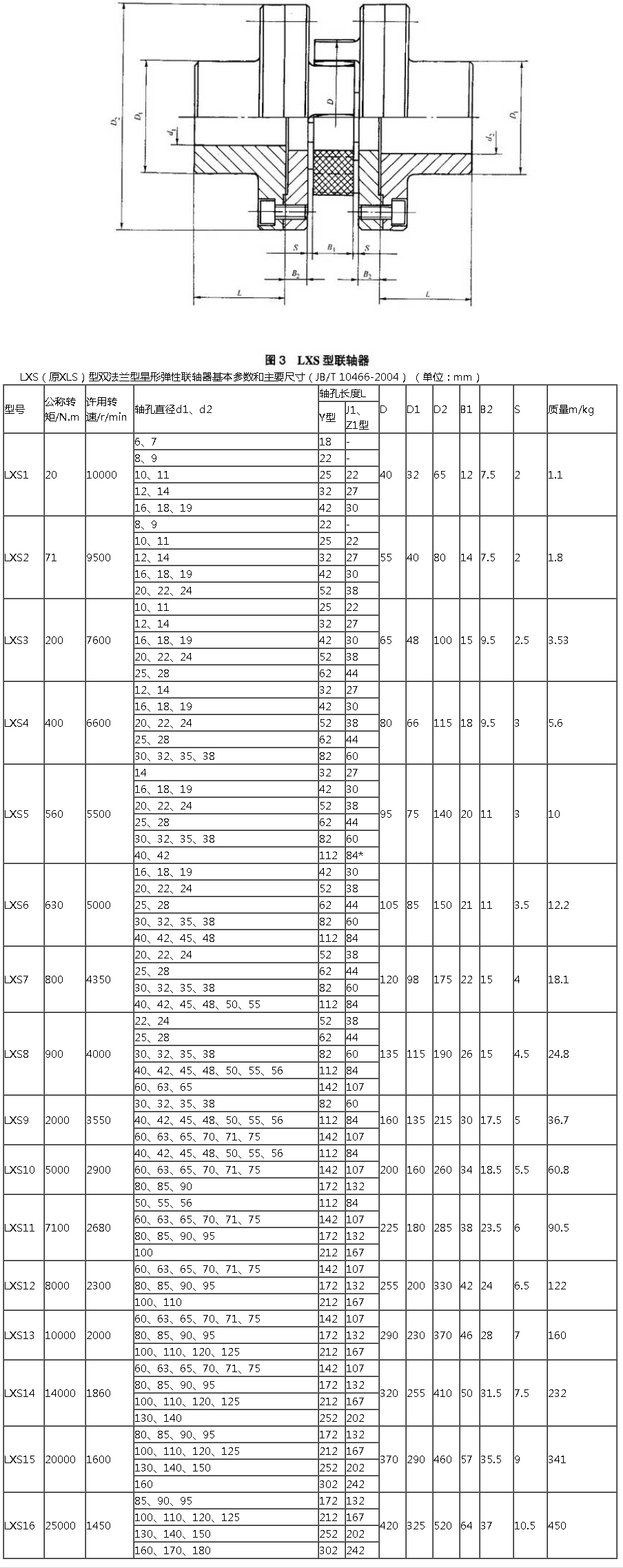 XLS型星形弹性双法兰联轴器的适用范围和性能特点: