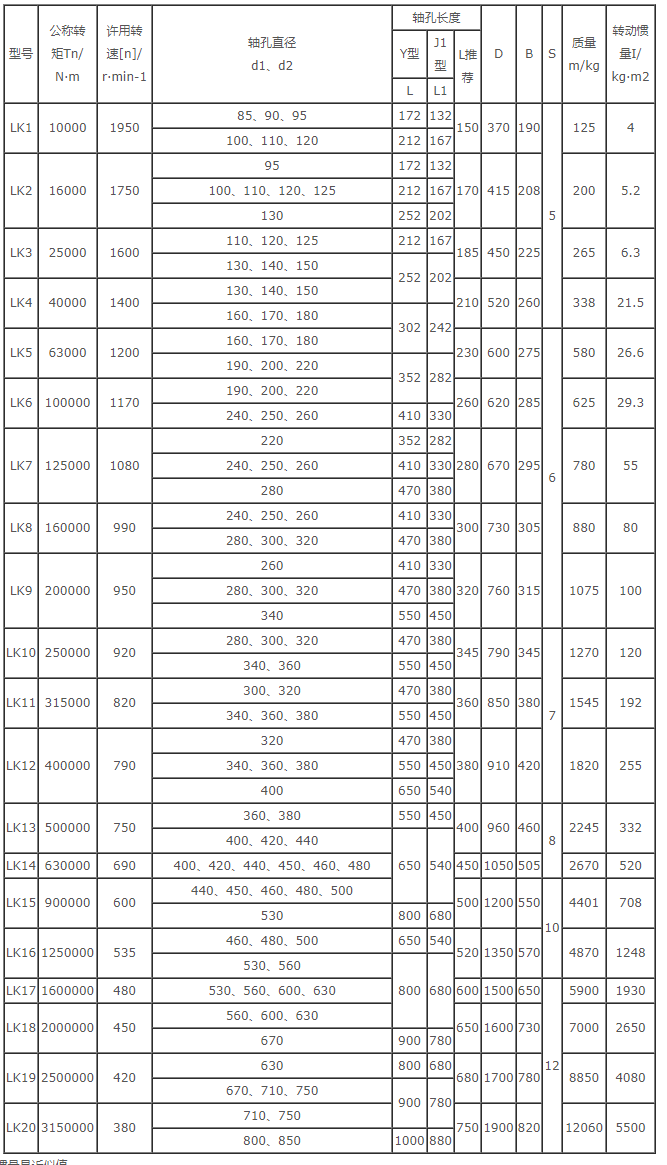 LK弹性块联轴器安装维护简便,使用寿命较长,根据需要通过改变橡胶配方(主要改变硬度)可以调整联轴器的扭转刚度。适用于联接两同轴线大中功率、振动冲击较大的轴系传动,例如冶金机械、矿山机械等。原来的标准(ZBJ19029-90)存在外径尺寸大、质量大等缺点,改进后的新标准(JB/T9148-99代替ZBJ19029-90)新结构不仅保留了减振、缓冲性能好的特点,而且缩小了外径尺寸,减轻了质量和转动惯量,提高了许用转速,经过几年的工业应用,优点明显,已成原结构的geng新换代产品。新标准许用转速平均提高28%, 大外径平均缩小36%,转动惯量平均减小70%,质量平均减轻57%。